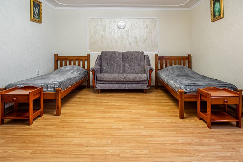 Небольшой корпус отеля расположен на улице Салова. В распоряжении гостей светлы уютные номера с удобствами. Везде имеется ванная комната с ванной и феном, в комнатах – телевизор, электрочайник, холодильник.